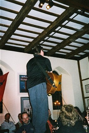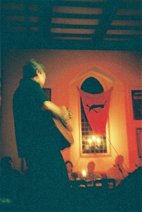 Paula writes: After having lived here for almost 8 years, it may be too easy to say how beautiful Scotland is. After a while, people probably stop believing me! But even my breath was taken away by the Isle of Arran, a mere ferry ride from the middle of the west coast of Scotland - really only a couple of hours from Glasgow. Even in the rain (which we saw a lot of that weekend!), it is stunning, with seaviews and hilly vistas you almost can't describe. No wonder I get the impression this is Nick's favourite place to play in Scotland - who could blame him? Especially when the venue is as exciting as the surroudings. Castlekirk is a former church which now serves as a B&B, art gallery and stunning medieval hall-like performance space. Nick played by candlelight without a PA to 50 people, and you could hear a pin drop... well, that's when he wasn't heckling or being heckled by the friendly attendees (or being offered killer homebrew!). We're loath to go on about the beauty of this place (because we want to get in next time :), but Vickie and Tam, who own the B&B and promote Nick's gigs there, make it very special. You should go out of your way to stay with them if - when - you visit Arran.