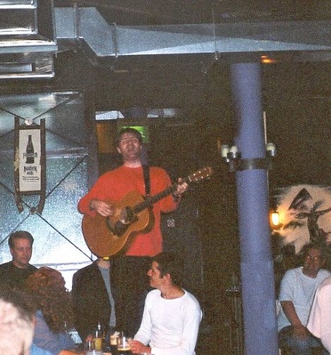 Have you ever had such a good time somewhere that you forgot important things like, oh, say, when it happened? Well, here is the problem, dear readers. These pictures were taken at Nick's storming free gig in June 2000 at Maclachlan's Bar in Glasgow, sadly no longer in existence. Boy, did they have a good selection of beers. But I digress.