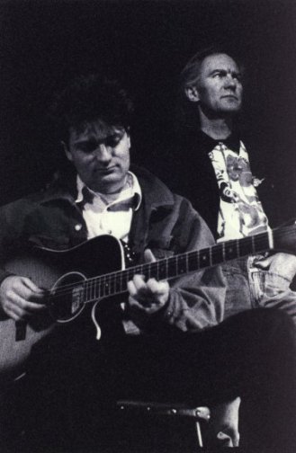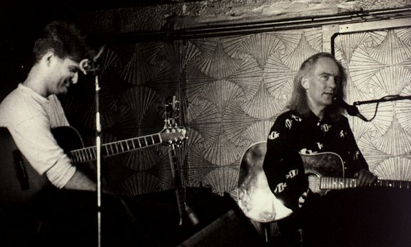 Nick plays while Roy looks offstage, Half Moon Putney, 1993
