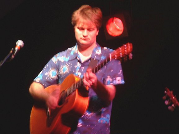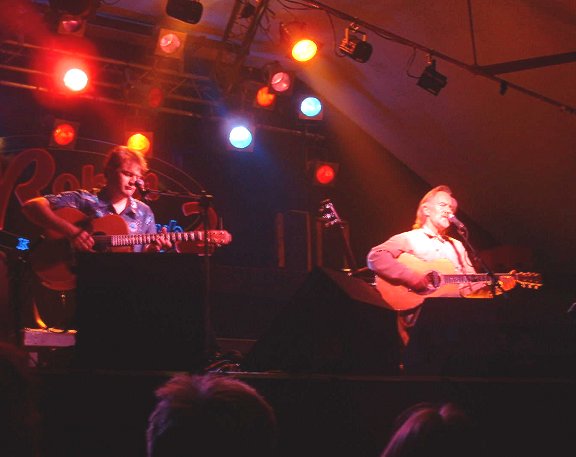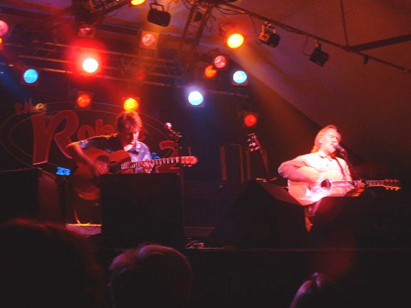 Paula writes: This was a local gig for HHOH movie supremo Philippa, so it's only appropriate that Roy looks a lot like her Uncle Jeff! (sorry Phil, it had to be said) Nick shook off what looked to be a small case of nerves and ran circles round the adoring crowd - literally! After a circuit of the room during Headless, he ended up on the bar wildly riffing away. Both he and Roy were on fine form during their gig, bantering and dealing with hecklers with the same ease in which they harmonized together. In addition, it's only the third time ever I've seen Nick play electric guitar, and I loved it. But that's a story for another review...