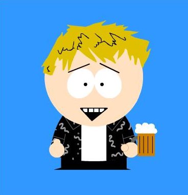 If you spot any of these reprobates at gigs, well hey you really should have your eyesight checked but feel free to say hello anyway. And any begging requests to have yourself added to this page will be graciously considered by the artiste (ie., me). Special thanks to the Planearium site for their South Park Studio software that allowed me to wreak this much havoc, and to the crazy kids at #squeeze for finding it.